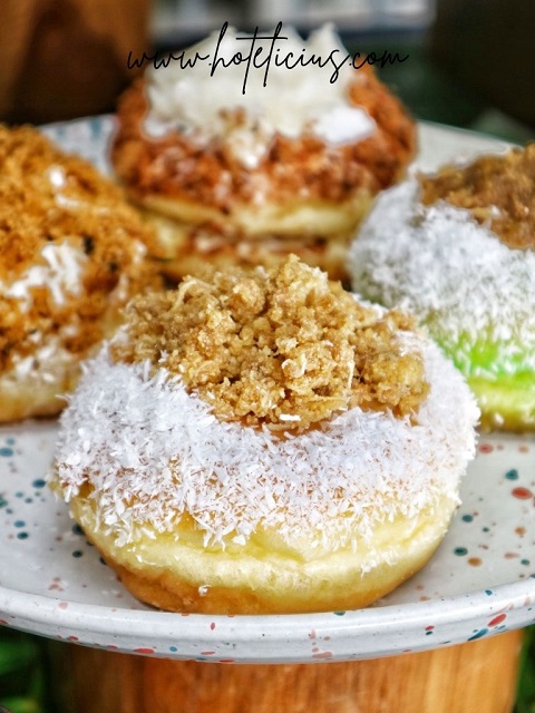 Januari 2020, saya datang ke acara peluncuran Alanuts, tempatnya di Terrace Café, The Alana Yogyakarta Hotel. Dalam kesempatan itu, saya icip-icip beberapa variannya. Dari jajaran donat tradisional, saya coba Alanuts Klepon. Saya suka rasanya yang klepon banget dan enten-enten manis atau campuran kelapa parut dengan gula merah, tapi kurang suka dengan kelapa parut putih yang bertabur di atasnya. Jadi, ternyata enten-enten tidak hanya menjadi topping, tapi menjadi isian dalamnya juga. Yup, selain bolong tengahnya, donat ini ada isiannya, unik ya. Ada sensasi gurih dan manis pada donat varian ini.